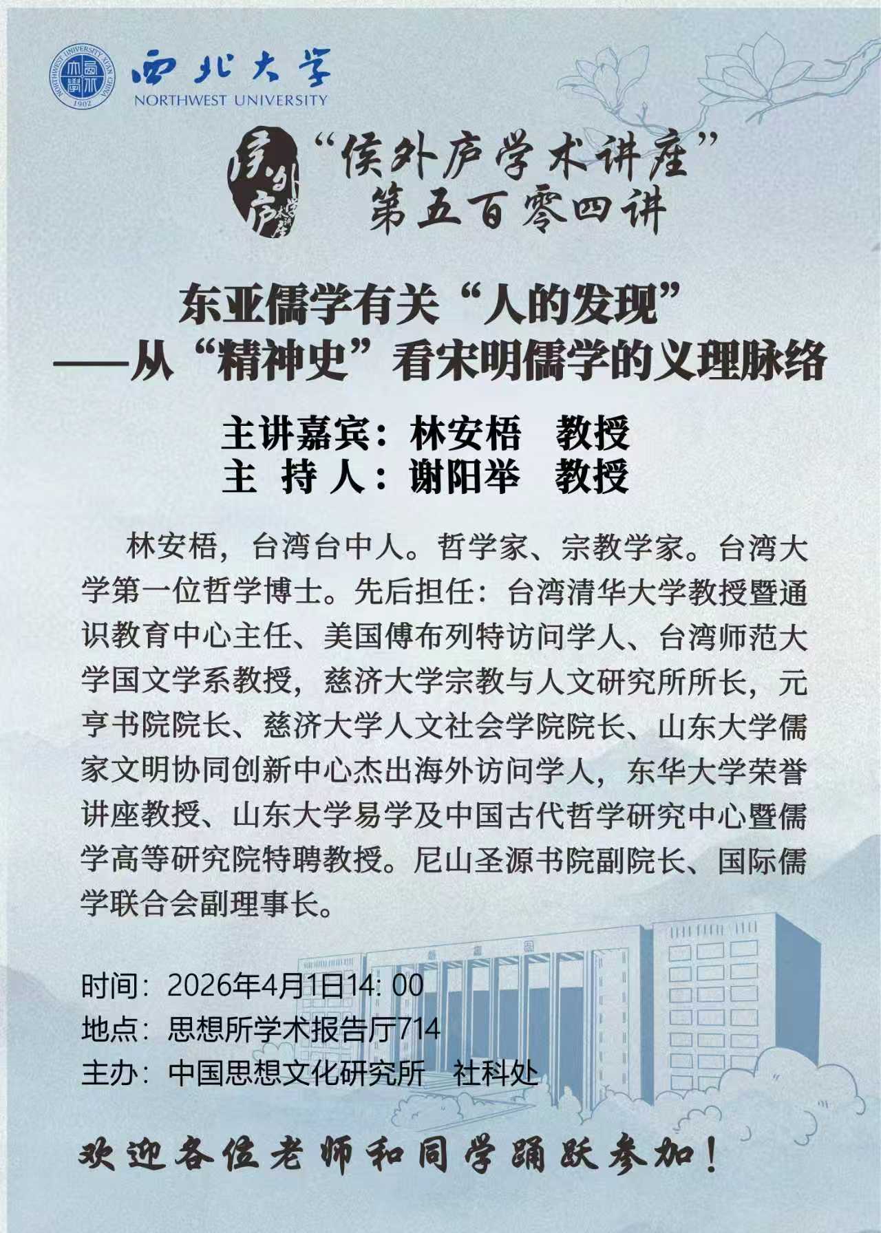 “侯外庐学术讲座” 第五百零四讲:东亚儒学有关“人的发现”——从“精神史”看宋明儒学的义理脉络